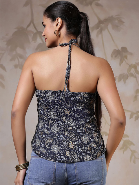 KEIYONA Women Floral Print Halter Neck Ethnic Cotton Top