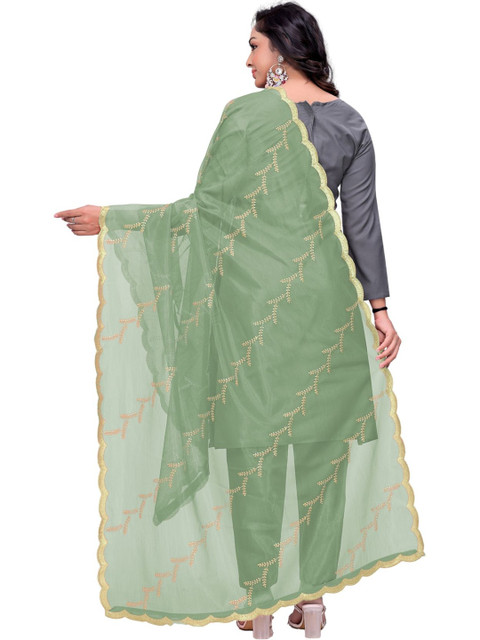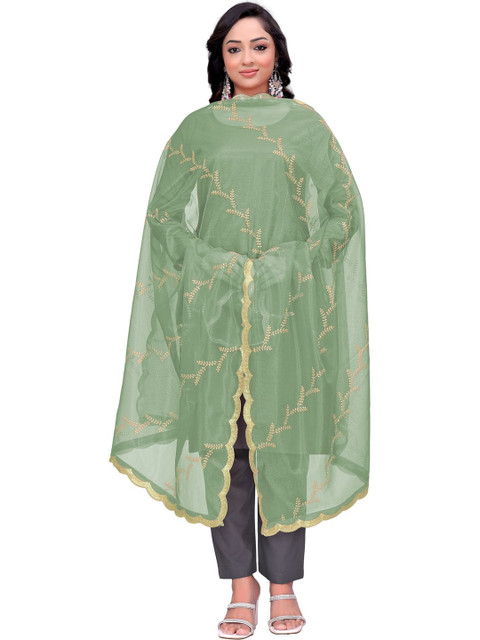 Green and gold-toned Floral embroidered dupatta , sequinned, embellished border