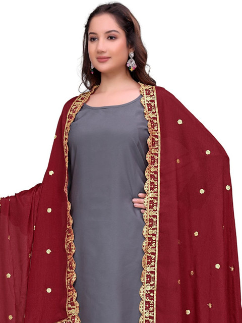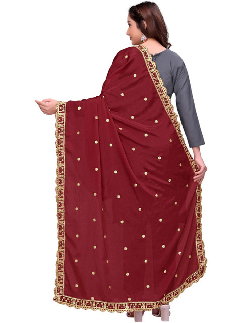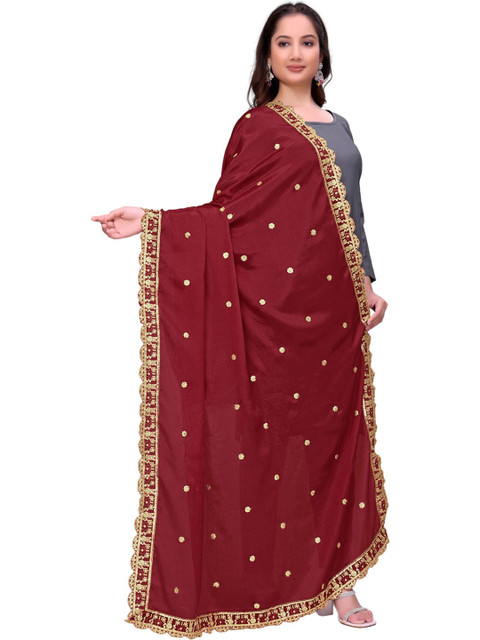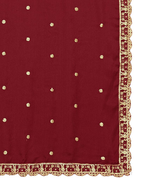 Maroon and gold-toned ethnic motifs embroidered dupatta sequinned, embellished border