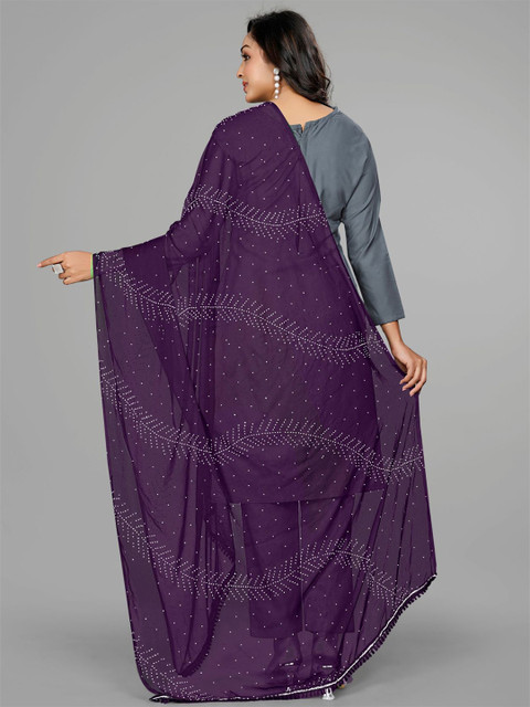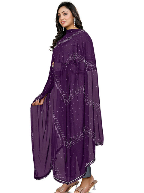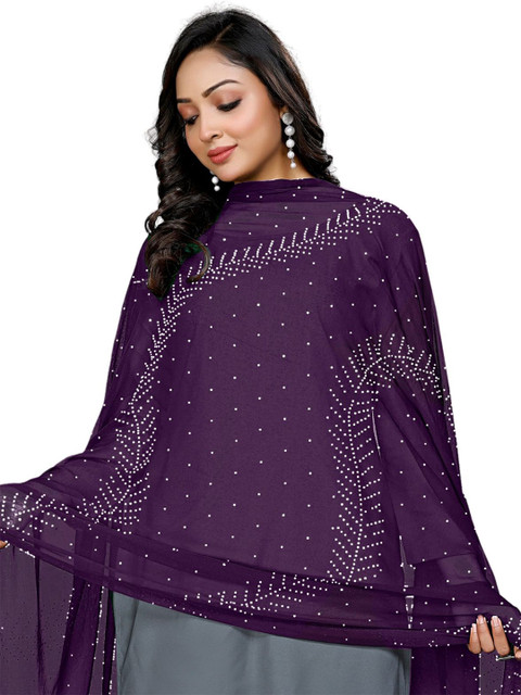 Violet and white floral printed dupatta, lace border