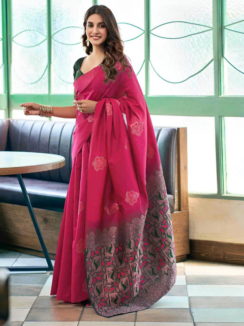 - Ethnic motifs woven design saree with No border