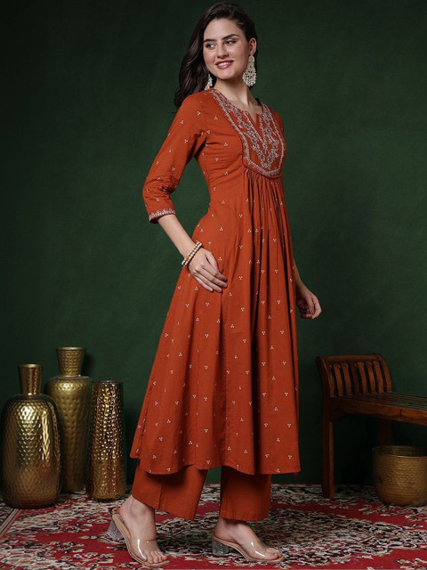 Orange yoke design Kurta with Palazzos with dupatta