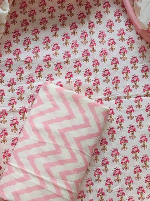 Pink and white printed bottom fabric