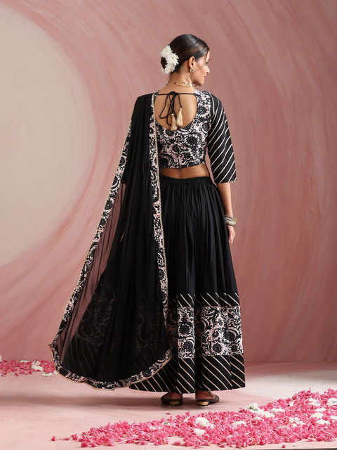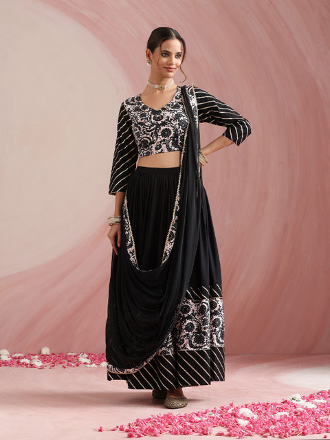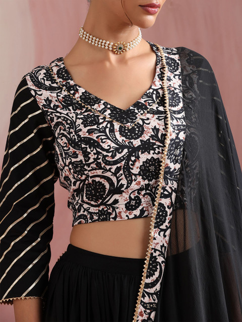 Black and white Floral printed choli with dupatta, gotta patti