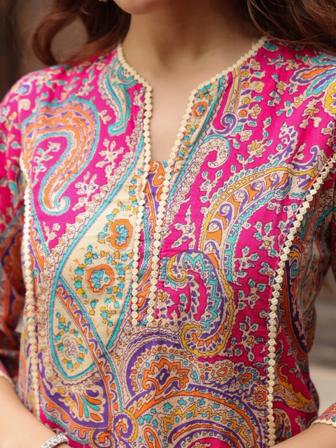 I recently purchased the PRISCA Paisley Printed Notch Neck Panelled A-Line Kurta, and I am absolutely delighted with it! From the moment I tried it on, I could see how thoughtfully it has been designed. The first thing that caught my attention was the beautiful paisley print-it looks so elegant, timeless, and versatile. The colors are vibrant yet sophisticated, making it perfect for both casual day wear and slightly festive or semi-formal occasions.