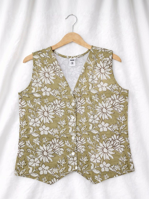 Style this printed cotton waistcoat with high-waist trousers or denim shorts and minimal accessories for an effortless smart-casual look.