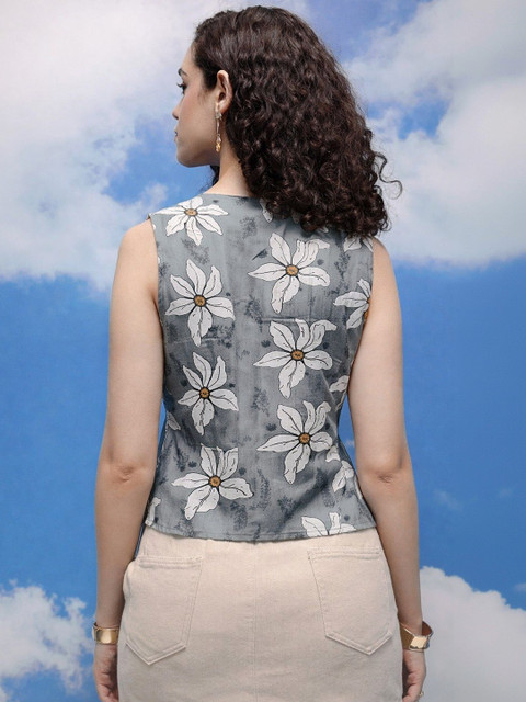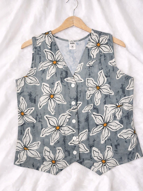 Style this printed cotton waistcoat with high-waist trousers or denim shorts and minimal accessories for an effortless smart-casual look.