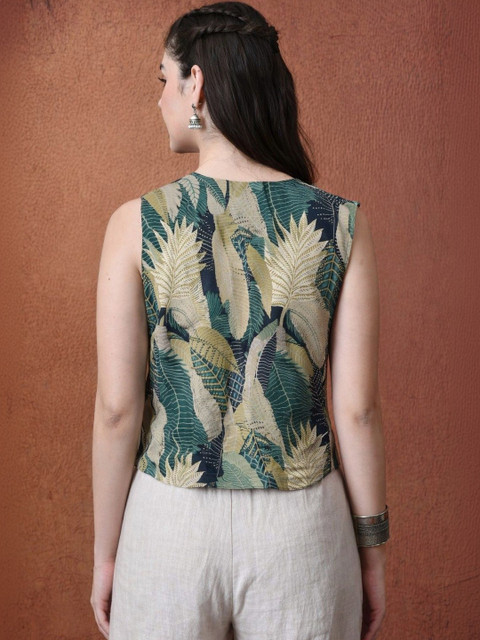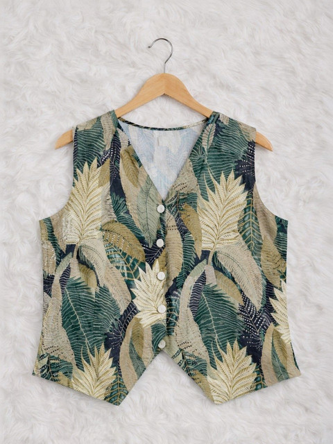Style this printed cotton waistcoat with high-waist trousers or denim shorts and minimal accessories for an effortless smart-casual look.