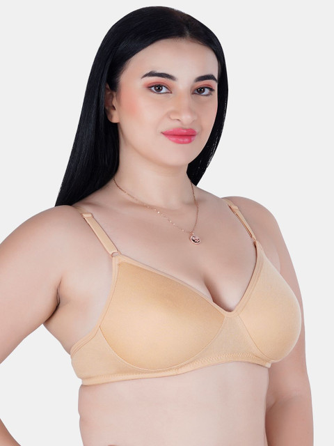 This padded and non-wired cotton t-shirt bra can be used for everyday wear under t-shirts and tops to kurtas and shirts. The seamless cups provide for a smooth finish with no shows on your outfit and the brushed back hook & eye provides for extra comfort.