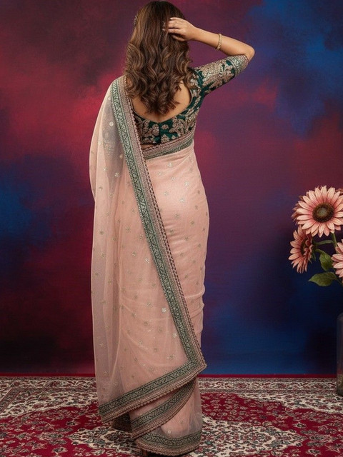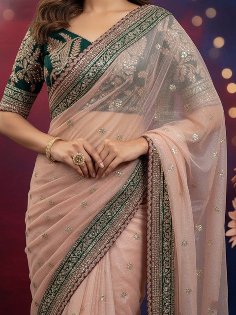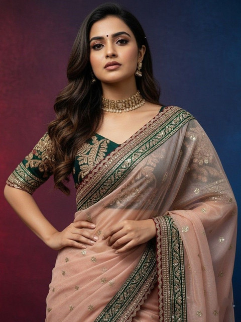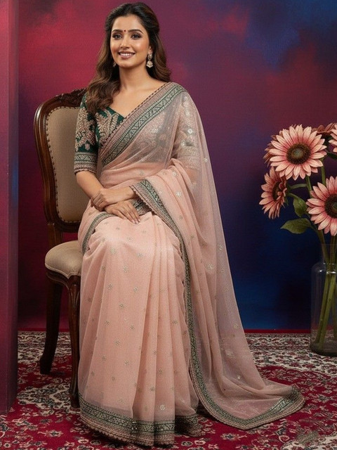 - Peach-coloured saree