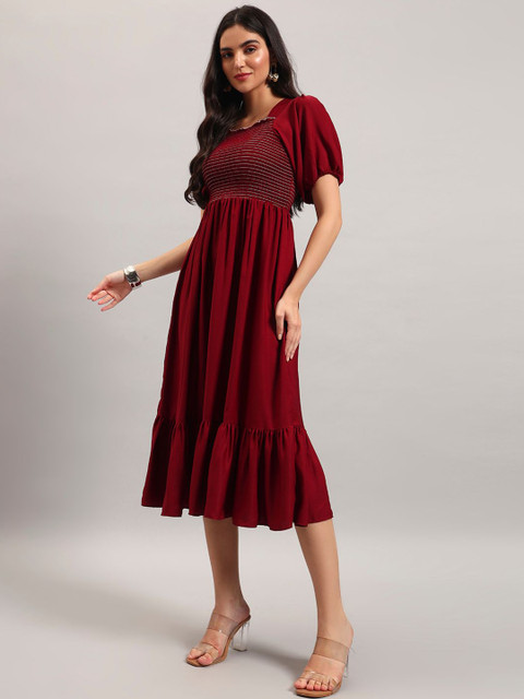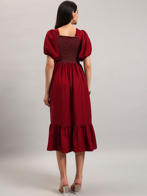 Krunal Raiyani Smocked Square Neck Fit And Flare Midi Dress