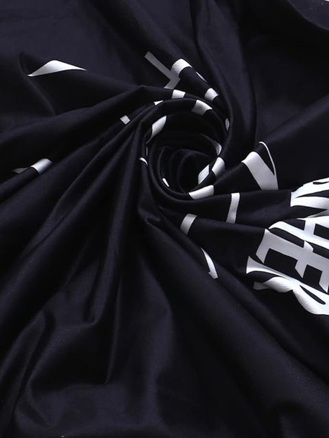 Black and white printed medium suitcase cover protector, has button and elastic locks, secured with zip closure