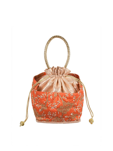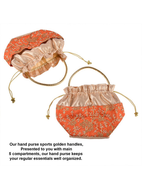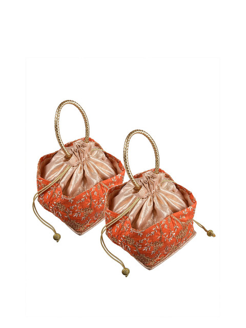 Pack Of 2Orange and gold-toned embroidered potli clutches