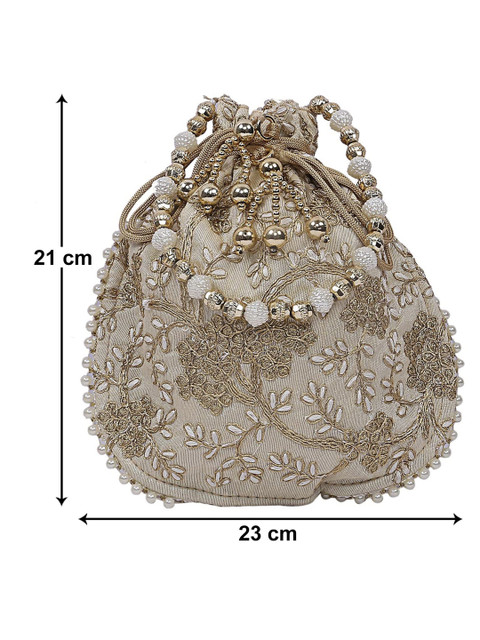 Kuber Industries Pack Of 2 Embroidery Hand Purse With Gold Pearl Border Potli Clutch