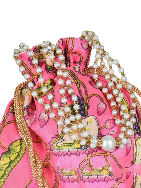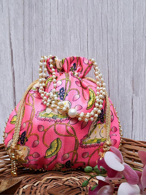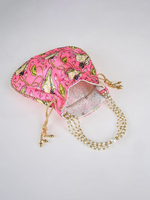 Pack of 3 pink and gold-toned embroidered potli clutches