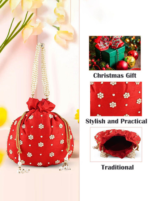 Set Of 3 Pink and white embroidered embellished potli clutches