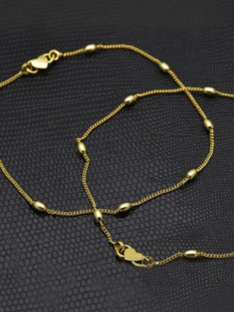 Gold-toned anklets, has artificial beaded details