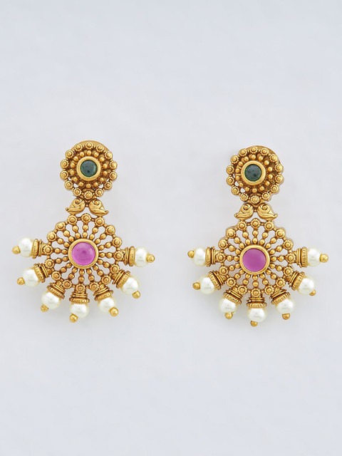 Red, gold and green classic drop earrings, gold-plated, has artificial beads