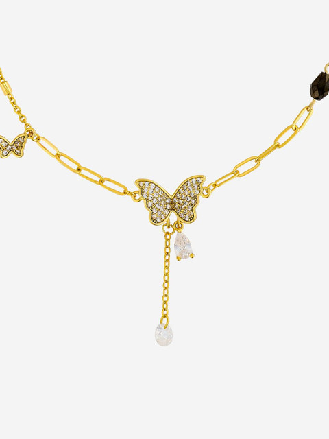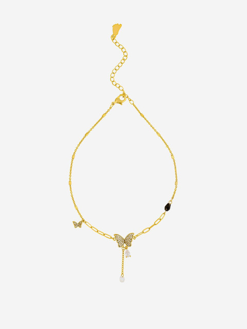 Gold-toned, white & black gold-plated zircon Studded anklet lobster closure