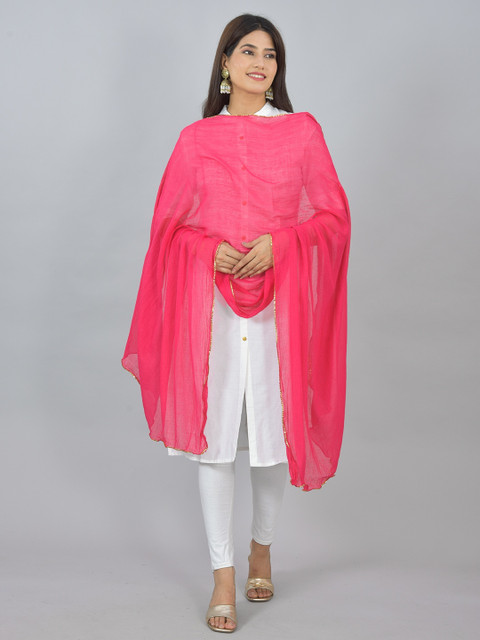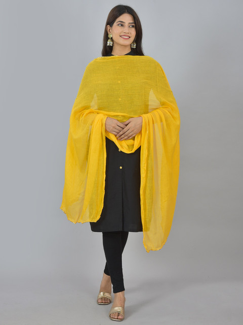 Pack of 7 pink, black, yellow, red, green, orange & blue solid dupatta, taping border