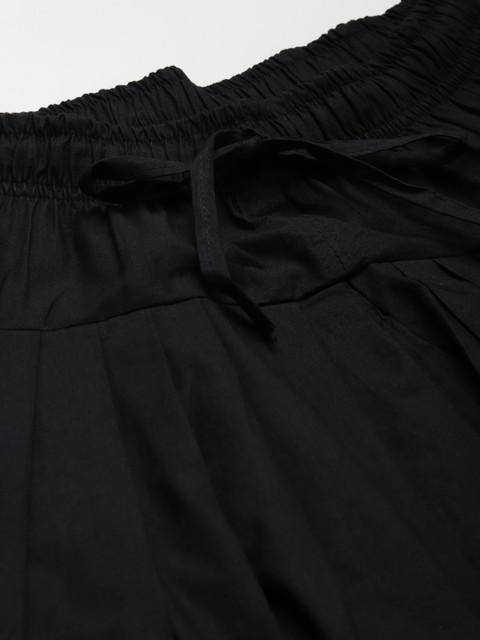 Black Solid Cropped Cotton Salwar, has elasticated waistband with drawstring closure