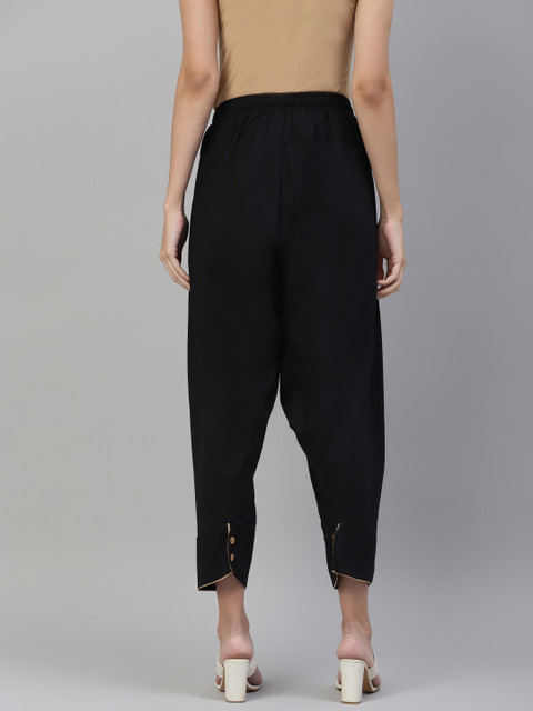 Laado – Pamper Yourself Women Black Solid Cropped Cotton Salwar