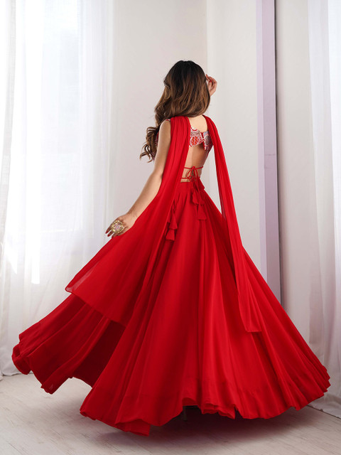 This red lehenga is honestly such a budget-friendly steal.