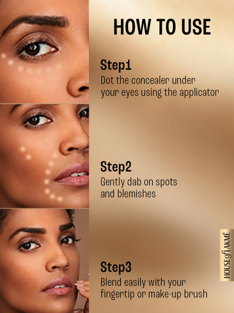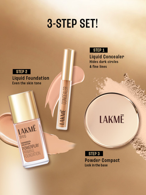 | Benefits | With Lakme 9to5 Primer+Matte Liquid Concealer, you can have it all! Introducing the Lakme 9to5 Primer+Matte Liquid Concealer that helps mask blemishes, dark circles, and fine lines.The concealer comes with a built-in primer that reduces pores and blurs dark spots for a smooth base and natural matte finish. With a unique applicator, the revolutionary formula glides on in a single stroke and blends seamlessly to offer a crease-free, buildable coverage.It is available in 8 shades that best suit a variety of skin tones.To conceal with a targeted coverage, place a dot from the tip of the applicator on blemishes or use the flat side of the applicator under your eyes to access and apply more product.Pro-tip: Choose a darker shade and shape your face for contour with the edge of the applicator. What's more? Lakme 9to5 Primer+Matte Liquid Concealer doesn't just conceal- it protects!This multi-purpose must-have moisturises, feels light on your skin, is completely oil-free and has SPF 25 for sun protection. All you must do is dot, dab, blend and repeat.A Natural matte finish is just three steps away. |