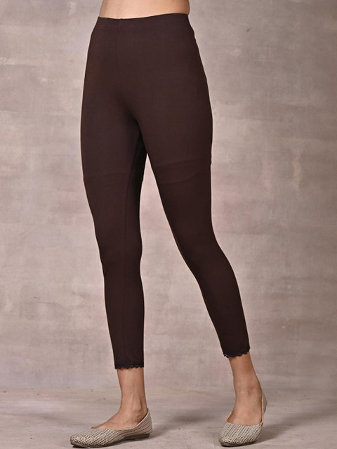 Lakshita Viscose Lycra Leggings for Women offer a chic and comfortable addition to any wardrobe. Crafted from soft, breathable, and lightweight fabric with a slight stretch, these leggings provide a flattering fit that moves with you throughout the day.The elegant lace detail on the hem adds a feminine touch, elevating the classic legging design to something more stylish and unique.The rich red colour makes these leggings a perfect statement piece for both casual and dressy occasions.These leggings are ideal for women looking for a blend of comfort and sophistication in their everyday attire.