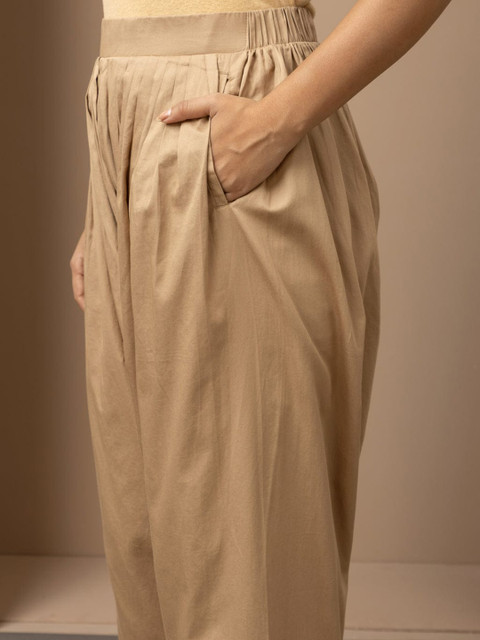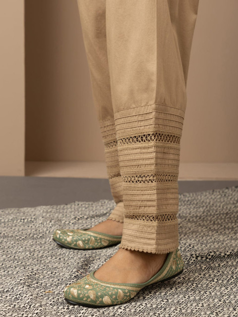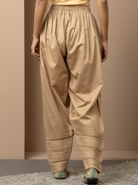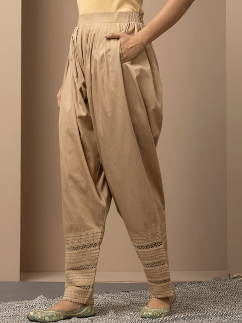 Gold-toned solid salwar with lace worked hem and elasticated waistband with slip-on closure
