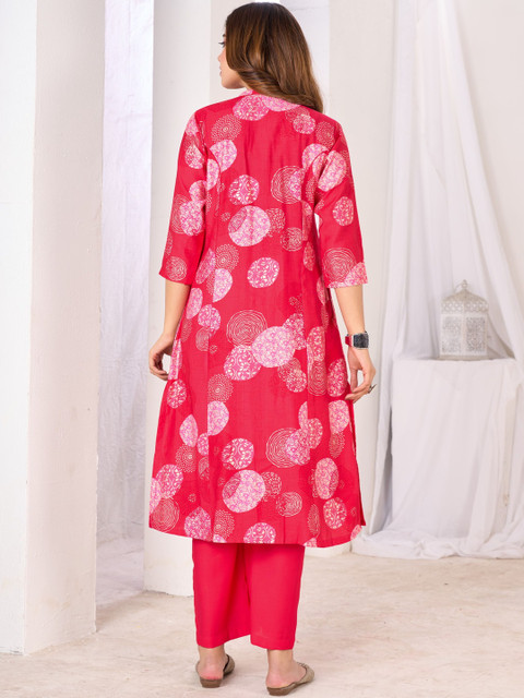 Pink printed tunic has a mandarin collar neck and threee quarter sleeves