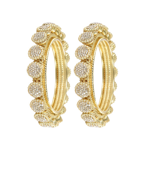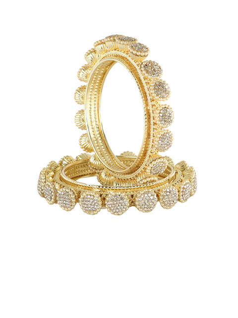 Set of 2 gold-toned & white zircon stone studded & beaded bangles, secured with a slip-on closure