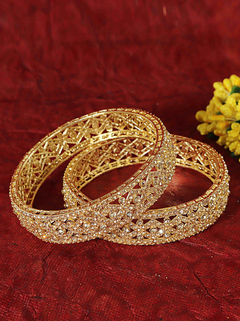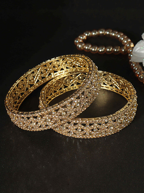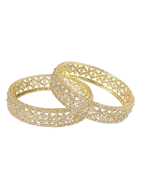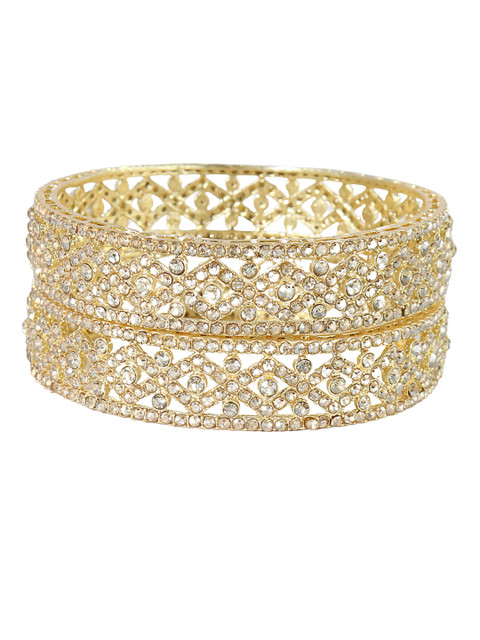 Set of two gold-tone bangles, each has white CZ-studded details, secured with slip-on closure