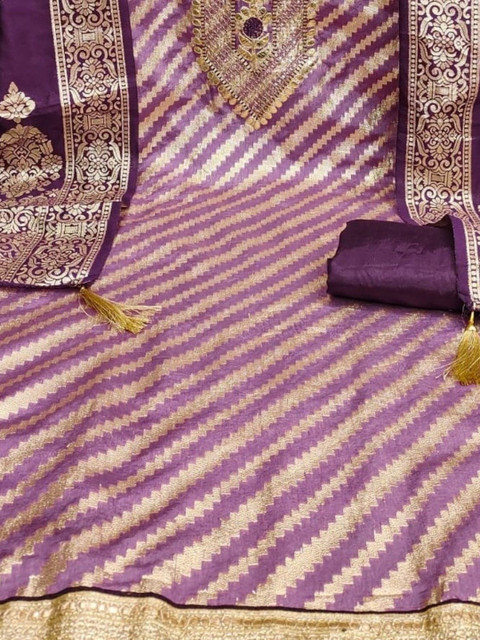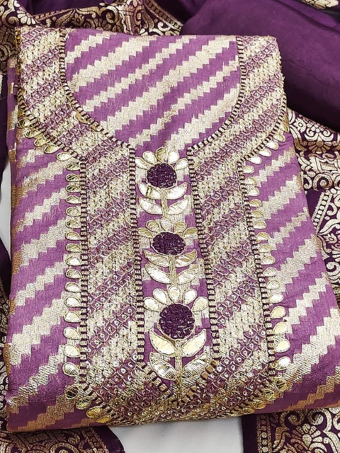 Lavender Banarasi Jacquard With Gota Patti Work Unstitched Dress Material