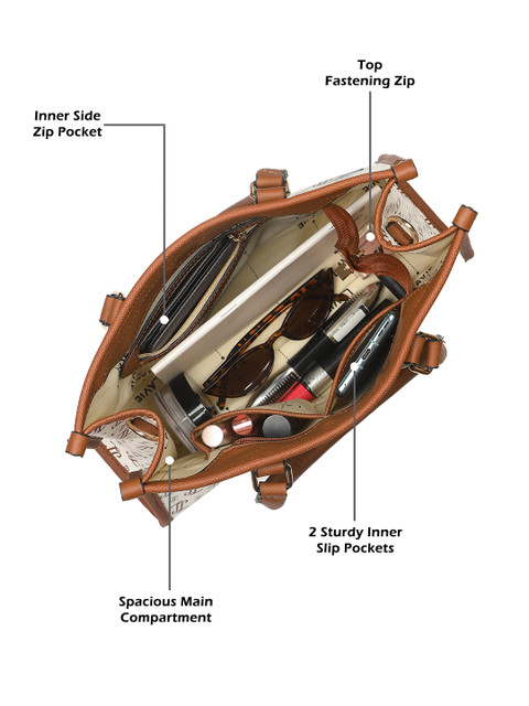 The colour of lavie logo printed bag is elegant.It has one major compartment with zip closure.It has 2 inner pockets.The quality of the bag is 10/10.