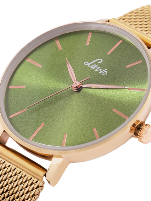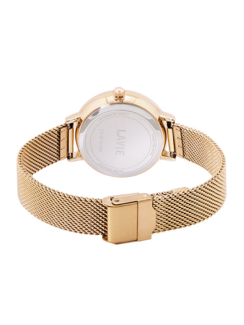 Strap Style: rose gold toned, regular, stainless steel strap with a button