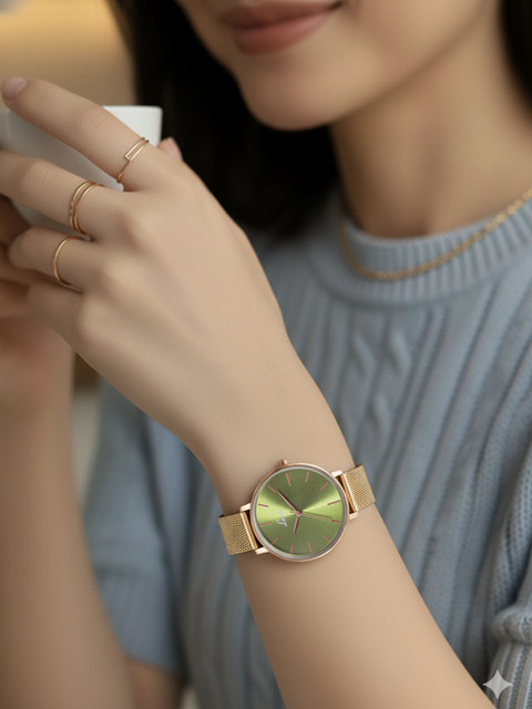 Dial style: green textured round stainless steel dial