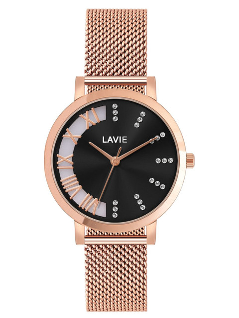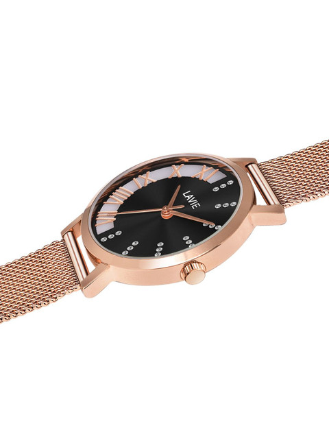 Dial style: black embellished round stainless steel dial