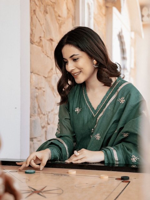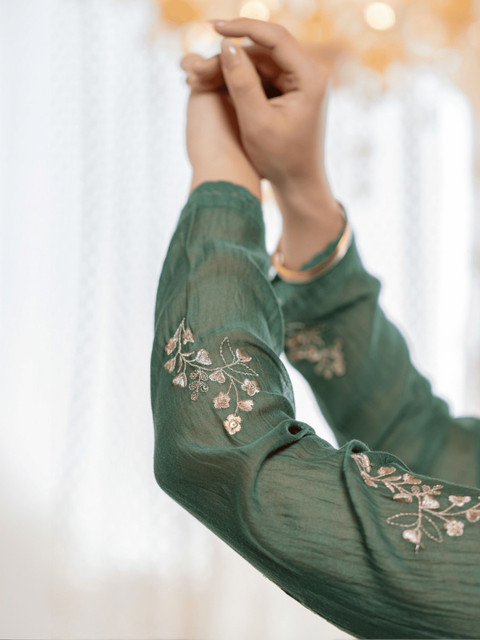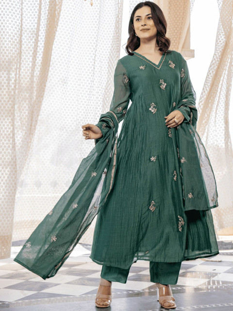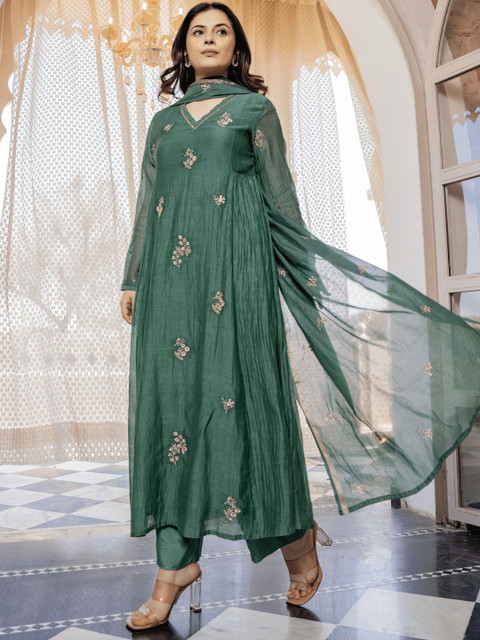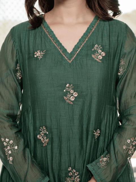 Green embroidered Kurta with Trousers with dupatta
