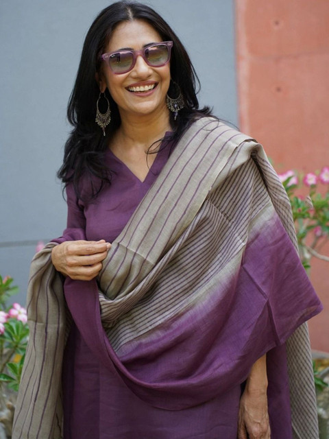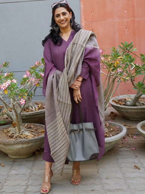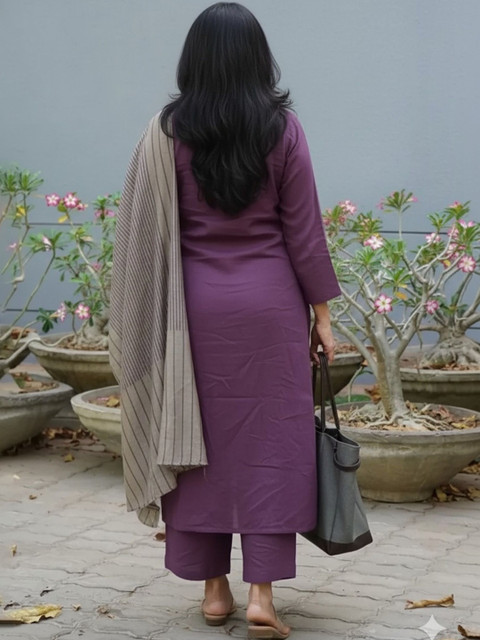 Purple solid Kurta with Palazzos with dupatta