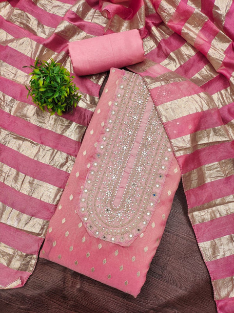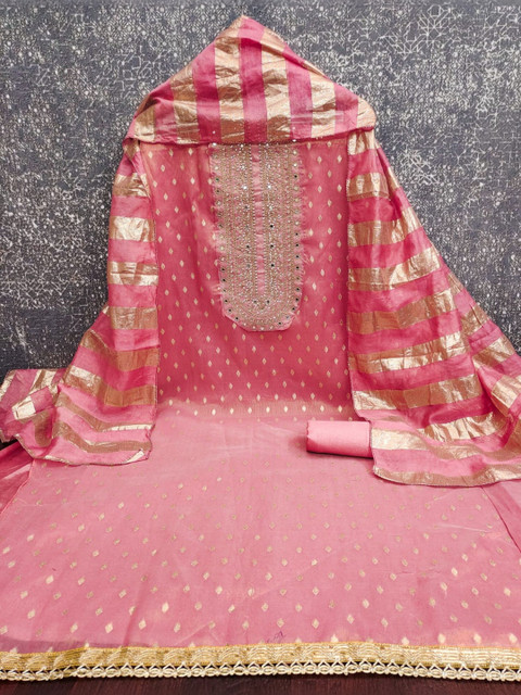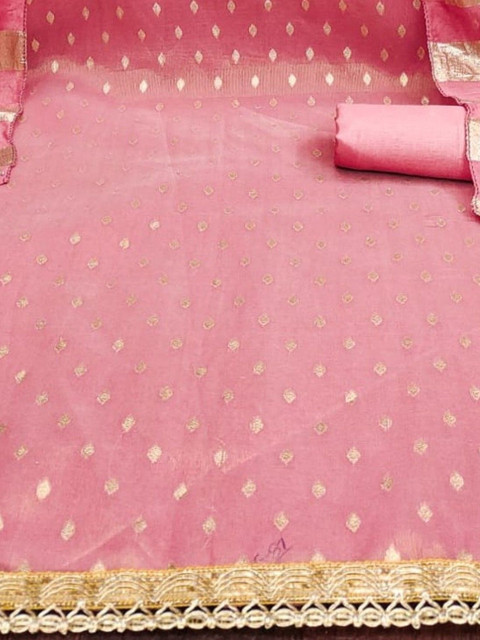 Gold-toned and pink floral woven design kurta fabric, has zari details