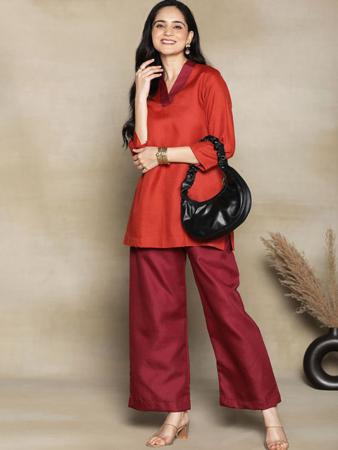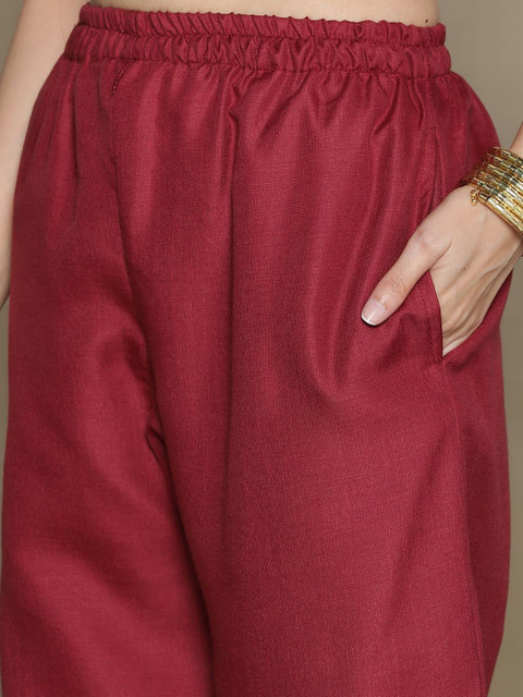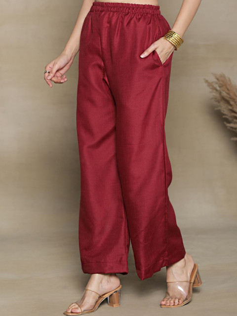 • Maroon woven palazzos