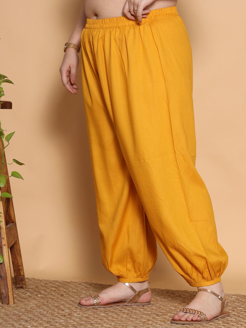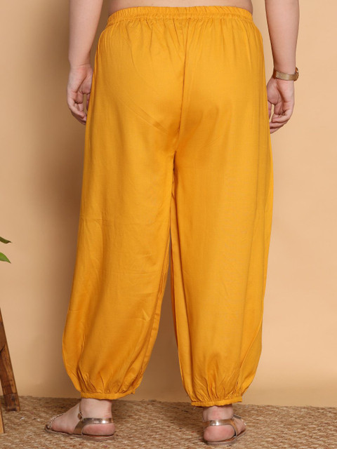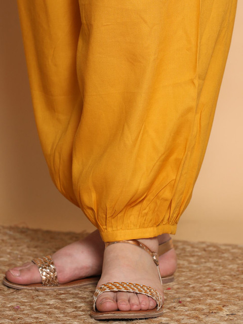 Mustard solid loose fit salwar has a waistband with slip-on closure