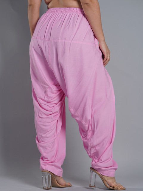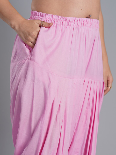 Pink solid mid-rise straight-fit salwar with gathers and pleats, has an elasticated waistband slip on closure
