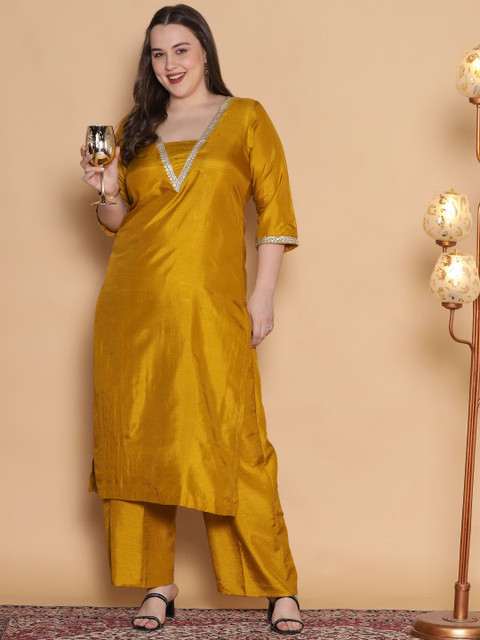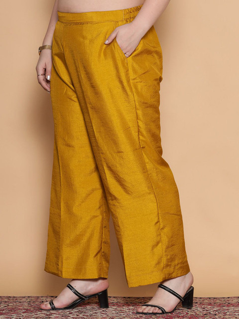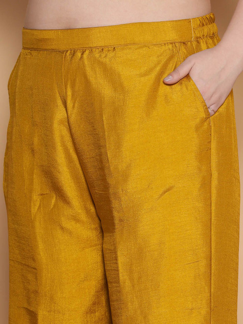 - Mustard yellow woven palazzos