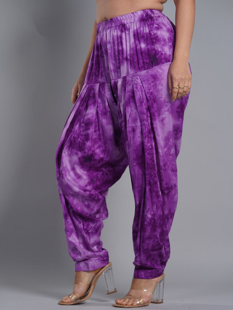Introducing our chic Purple Rayon TieDye Salwar with a fully elasticated waist for ultimate comfort and style. Crafted from premium rayon, it offers a perfect fit and effortless movement. Versatile and timeless, pair it with any top for a sophisticated look.