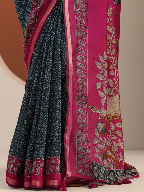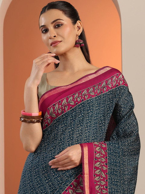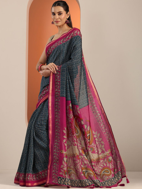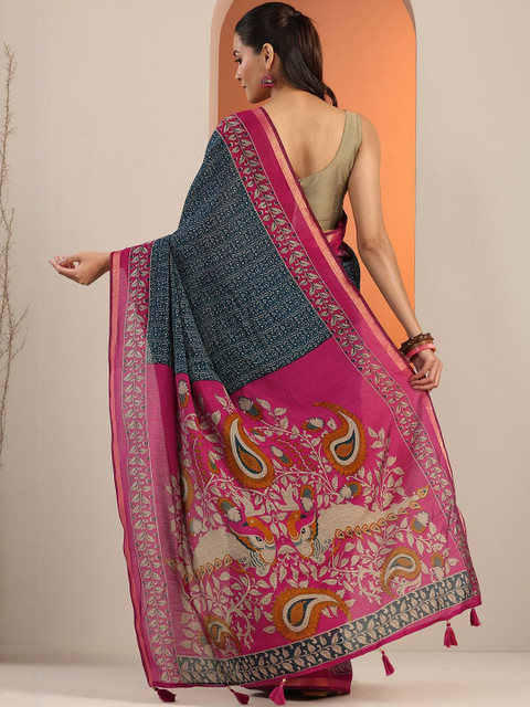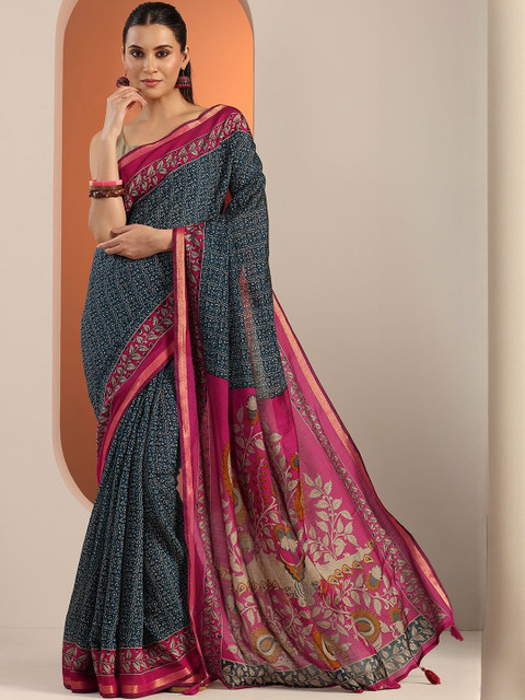 - Ethnic motifs printed saree with woven design border border