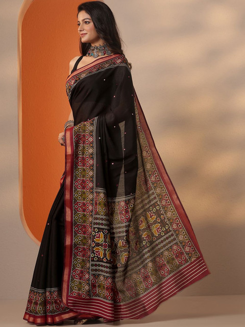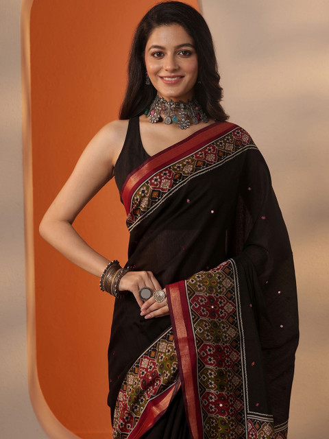 - Ethnic motifs woven design saree with zari border border