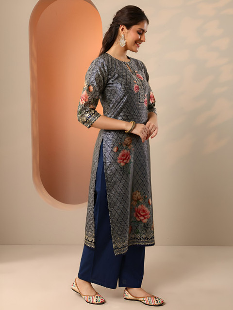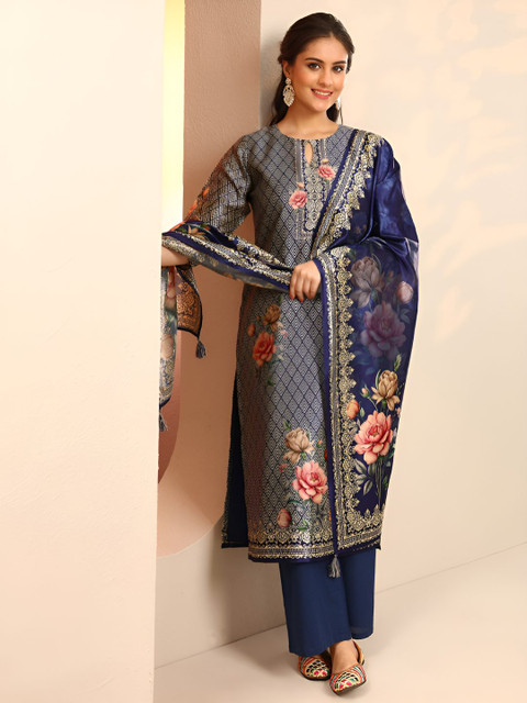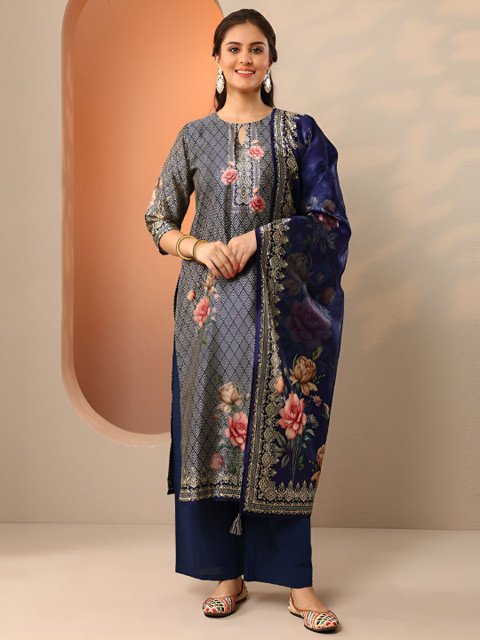 Navy blue printed kurta with palazzos & dupatta