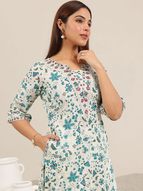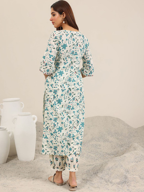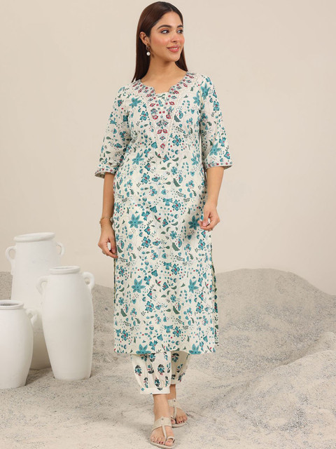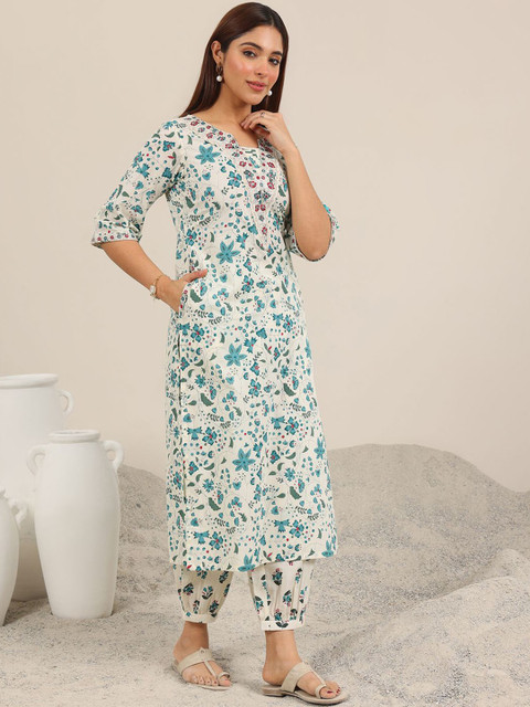 Libas Floral Printed Regular Mirror Work Kurta With Salwar